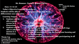 This week is a 4 day week due to a waiver day happening on Tuesday of this week. We will be finishing the vectors unit and moving onto projectile motion.