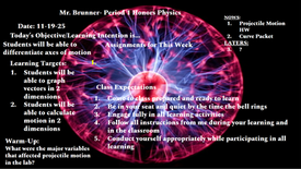 This week we will be moving onto projectile motion and further completing the notes and lab for the unit. (UPDATE- Monday was a snow day so there are only 4 days this week)