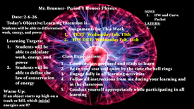 This week we will be working on the completion of the notes over Work, Energy, and Power. We will then be moving onto the lab and other assignments of the unit