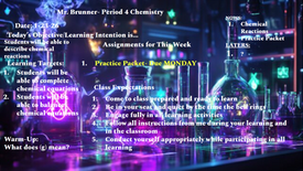 This week we will be completing the test over the Mole and molar conversions and will then be completing the introductory assignments of the chemical reactions unit.