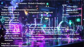 This week we will be finishing the practice assignment over stoichiometry. We will then be preparing and then completing the lab over stoichiometry, the Kool-Aid lab.