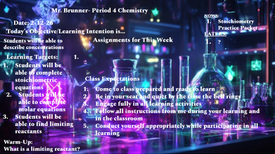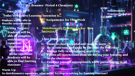 Monday was set to be a school day make up but ended up being cancelled. We will be continuing to complete the assignments over the stoichiometry and then preparing for the lab experiments of the unit.